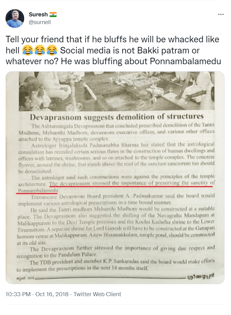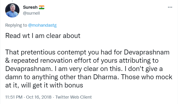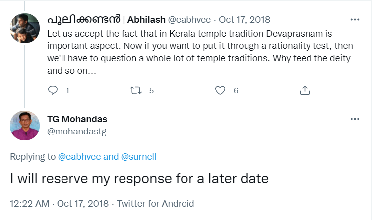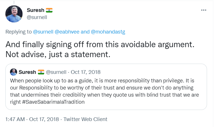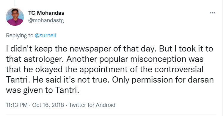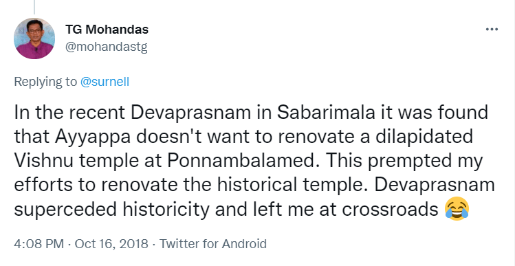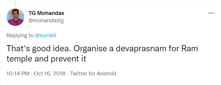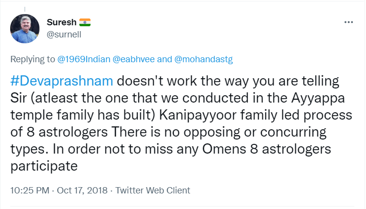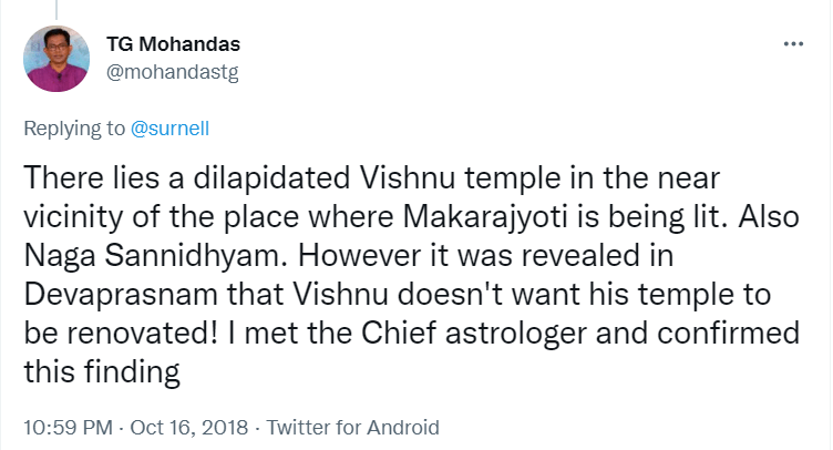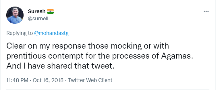 To understand the logic behind the age old practice in Sabarimala, all the readers are requested to go through the Blog Site maintained by a highly educated woman, Maitri by name, engaged in the research of menstrual periods of women for the past nine years. She is very popular in Karnataka through her educating mission. Her write up remains highly welcome, informative and reformative among all classes of women, possessing the stamp of personal experience. The Women Liberation Activists (who are verily professionals) fighting for equality in the matter of Sabarimala Darshan should definitely go through her Blog Site to feel greatly rewarded. The link to her Blog Site is given hereunder for everyone’s enlightenment and the accruing benefit thereafter. https://mythrispeaks.wordpress.com/2018/10/23/sabarimala-verdict-fabricated-rights-over-real-experiences-of-women/amp/?__twitter_impression=true