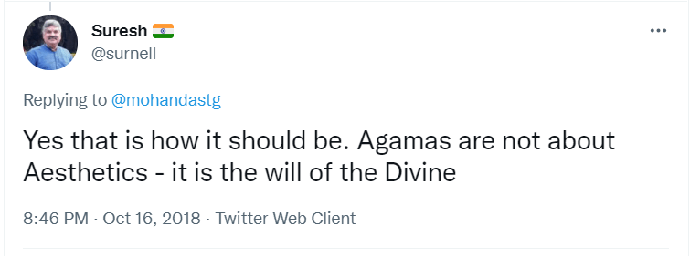 One of the five judges who gave the verdict, remaining a member of the constitution bench, wrote that a deity has no fundamental rights. Only the human beings in the form of pilgrims or visitors can have fundamental rights. As such, the deity, i.e. Lord Ayyappa in this case, has no right in setting up the standards for the pilgrimage. If this is to be accepted as correct, in the light of religious beliefs, Lord Ayyappa has to be considered as an inert entity without any Chaitanyam i.e. life force in Him, thereby remaining there as just an object of a metal piece. When it is strongly believed and accepted by the class of faithful devotees that even hillocks like Arunaachala and Palani in Tamil Nadu have a force field around them radiating Chaitanyam, life force, this verdict becomes a stab on the back of the class of faithful devotees. The great seer, Ramana Maharshi, has stated that he could visualise the hill of Arunaachala as a vibrant Spirit which forcibly robbed the individual free will in him and thereafter made him an eternal brain deranged mendicant. This is clear in his famous composition named அக்ஷரமணமாலை, the sweet smelling garland of letters composed in the alphabetical order as an offering to Lord Arunaachala.